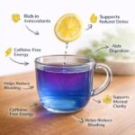 - Steeps into a rich sapphire-blue tea
